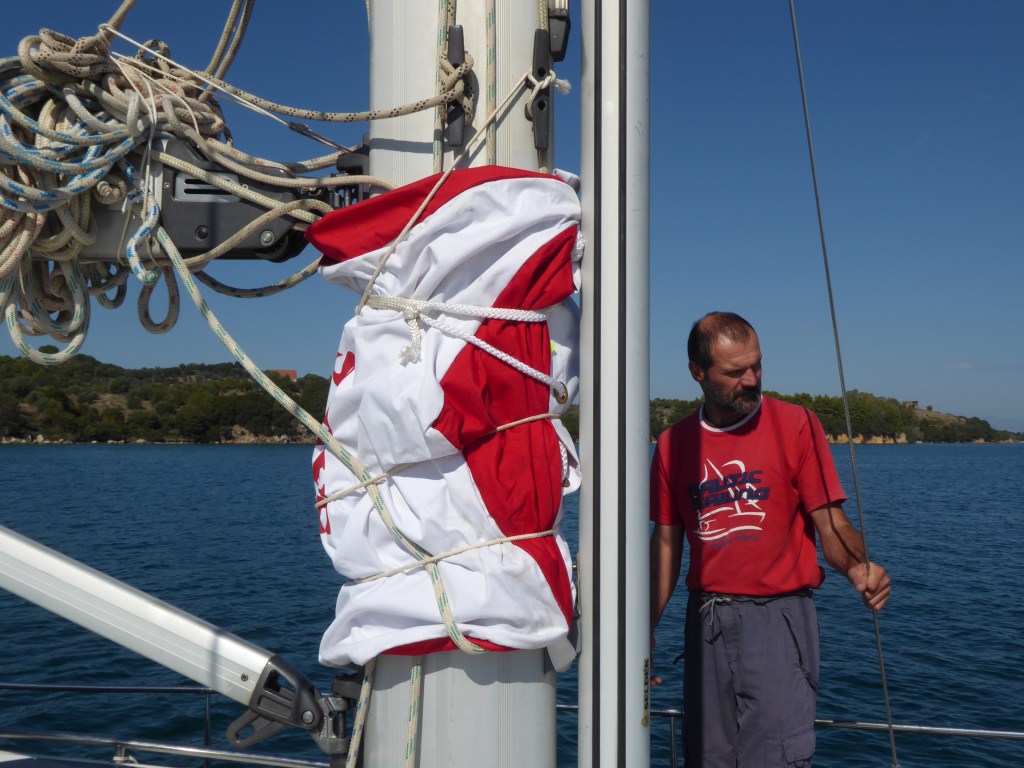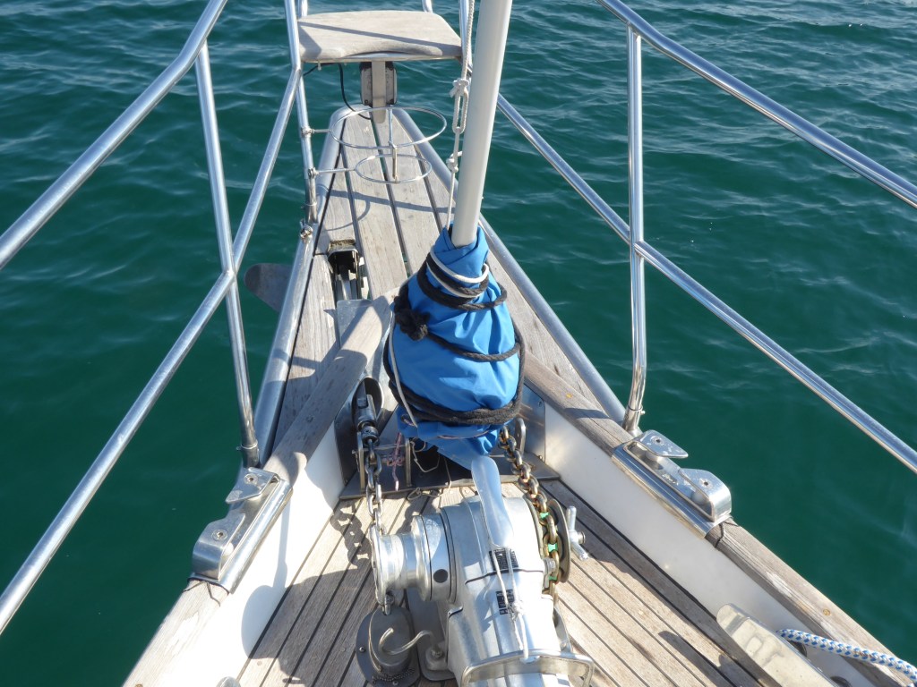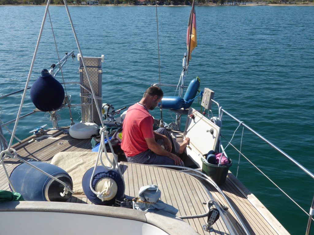 Peter am Steuer und ich vorne am Anker. Ganz langsam und in Ruhe läuft alles ab. Es wird professionell und bedacht alles gemacht.