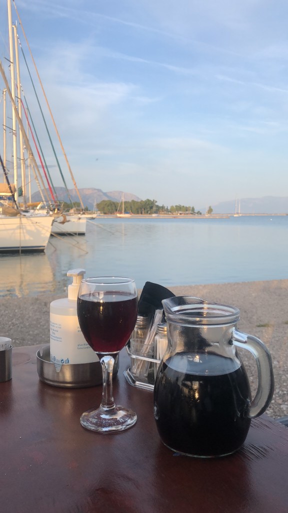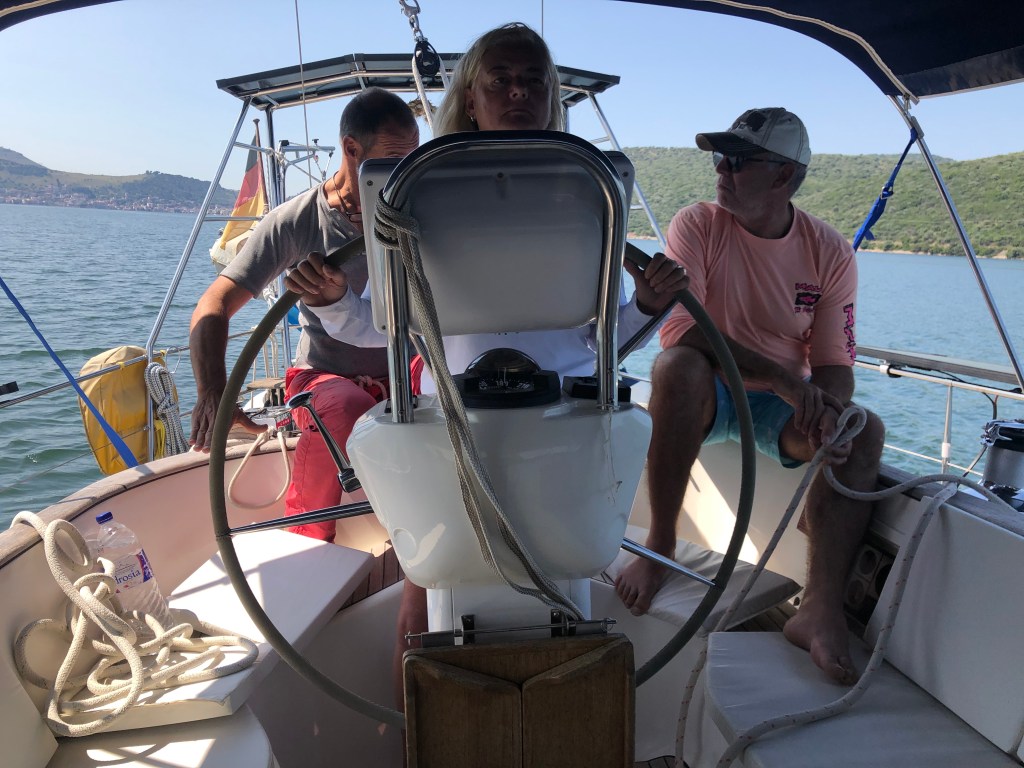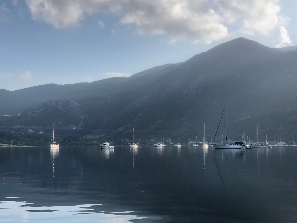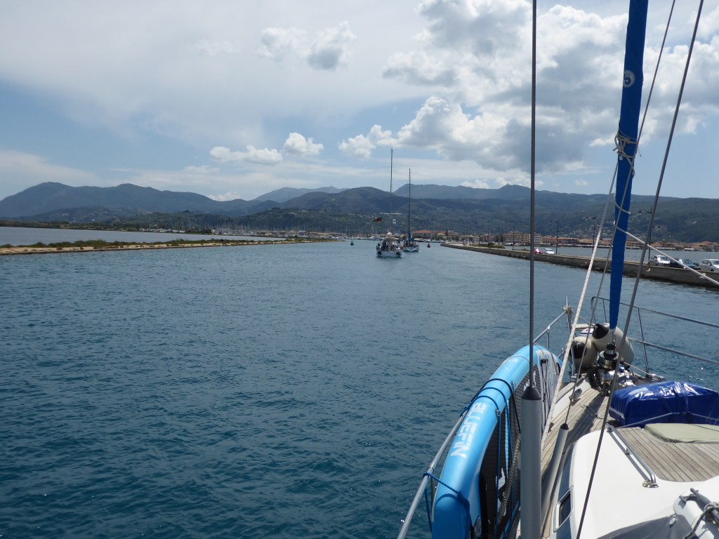 Zurück am Boot wird alles klar gemacht und wir legen ab. Wenig Wind am Morgen. Im Eingang vom Golf von Korinth können wir wieder den Para setzen und bis kurz vor der langen Einfahrt von Messolonghi auch benutzen. Echt toll.
