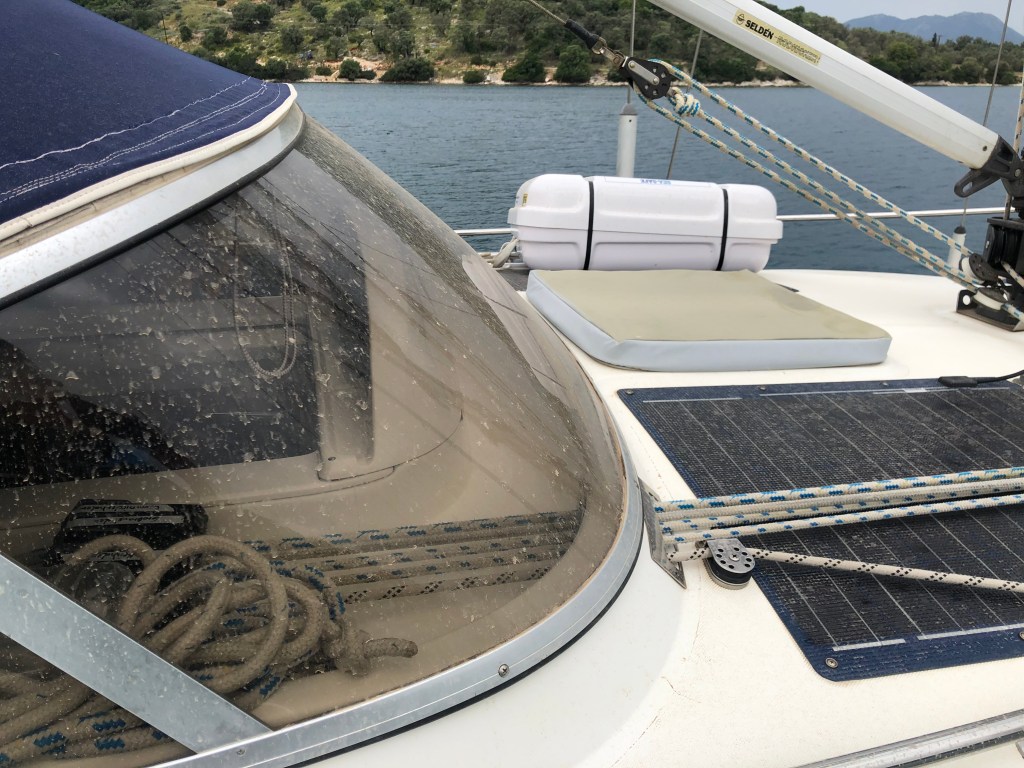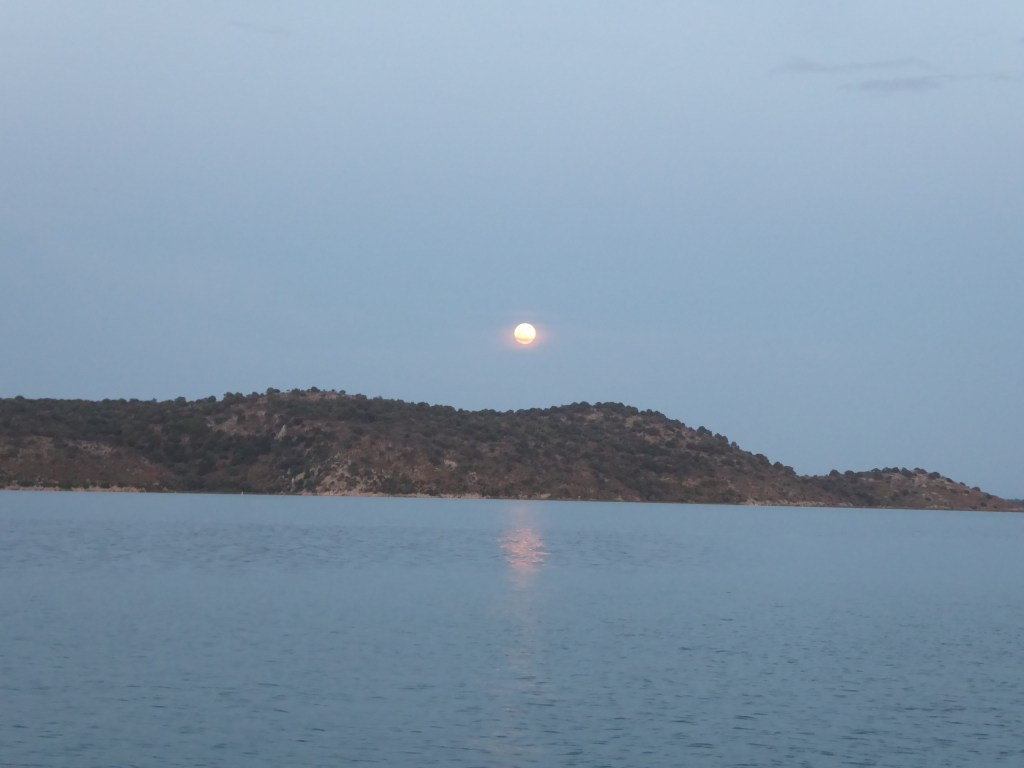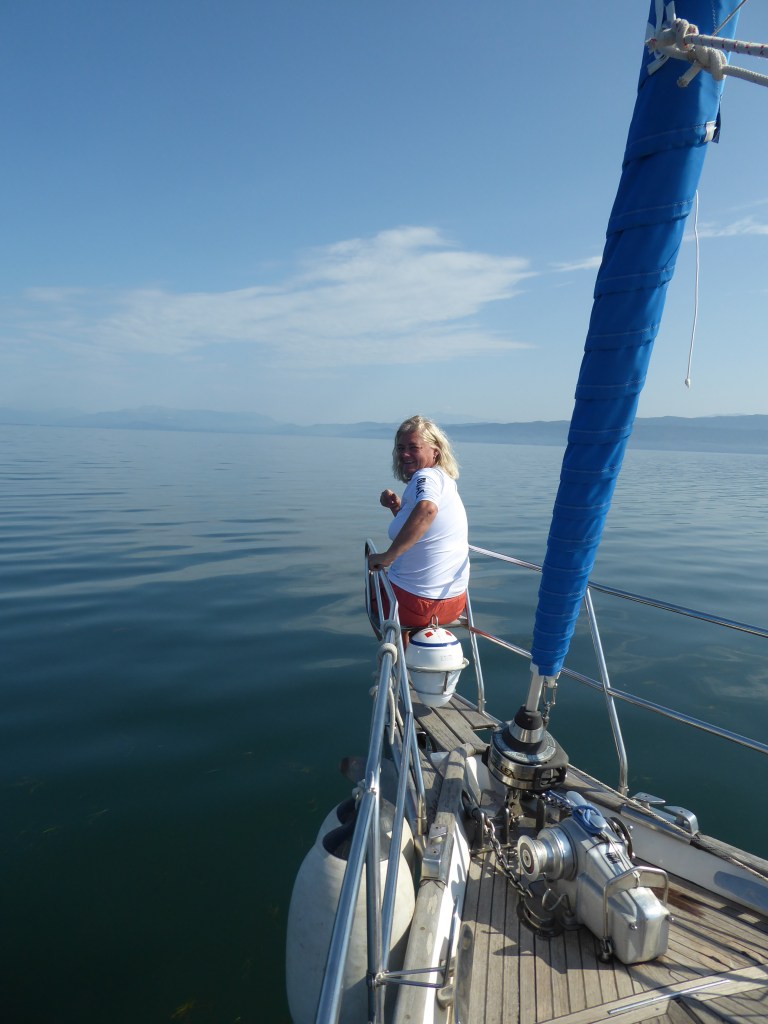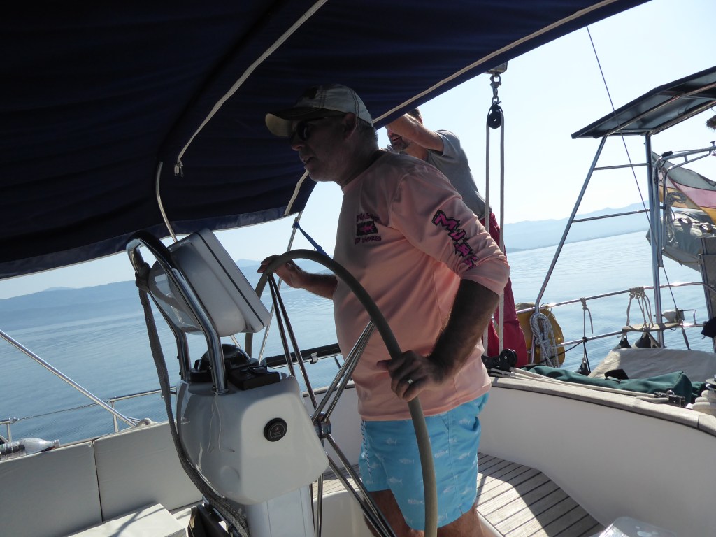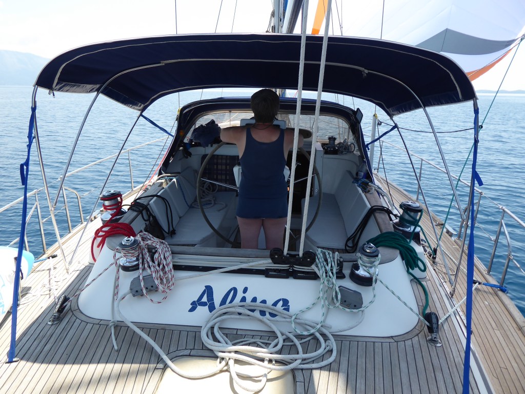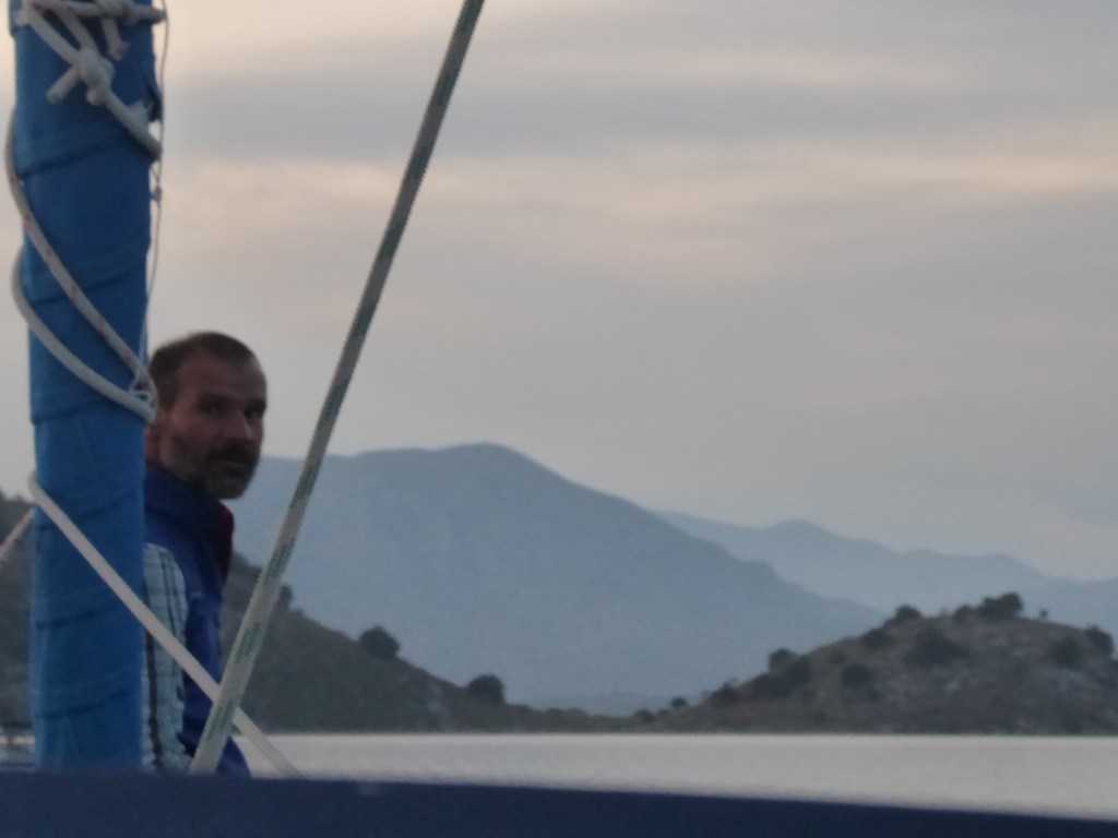 Wir verlassen Kalamos nach einem frühen und kaltem schwimmen, und kreuzen raus mit dem Ziel Messalonghi am Golf von Korinth. Wir bauen auf dieser Strecke das Paragsegel auf. Wir wissen noch nicht genau wo, für alle Rollen und Leinen, der beste Platz ist, aber das werden wir mit der Zeit schon lernen. Es dauert nicht mehr so lange bis er steht, und ein wenig wackelig ist er noch. Aber man merkt jetzt schon was für ein Gewinn es ist ihn zu haben. Danke Friedel!