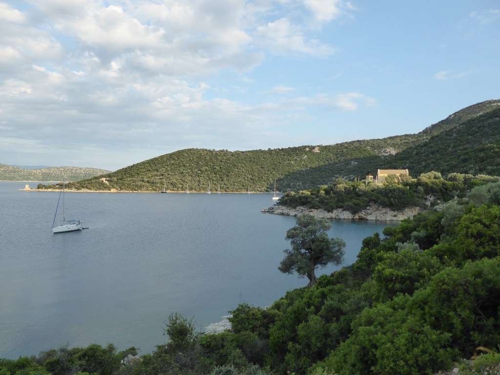 Messalonghi kann es nicht werden das schaffen wir bei diesem starken Wind auf die Nase nicht. So ist das eben beim segeln, die Pläne richten sich nach dem Wind. Wir steuen eine geschützte Bucht in der Nsis Petalas an.