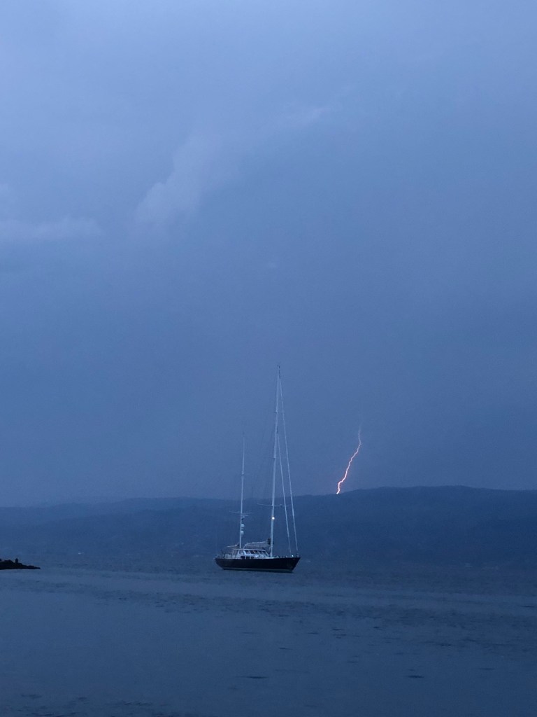 Aber die ständigen Wassertaxis mit ihren Bugwellen waren das schlimmste. Bei diesen Wellen klemmte sich das Dinghi unter die Badeplattform und das Ergebnis war ein krummes Paddel. Nicht mehr zu gebrauchen! Echt ärgerlich! Immer mehr Boote kamen und legten ihren Anker über andere Ankerketten. Das Chaos begann. Wir blieben am Abend lieber an Bord um da zu sein wenn was ist und auch weil es nach Gewitter aussah. Aber es blieb ruhig und wir konnten langsam entspannen.