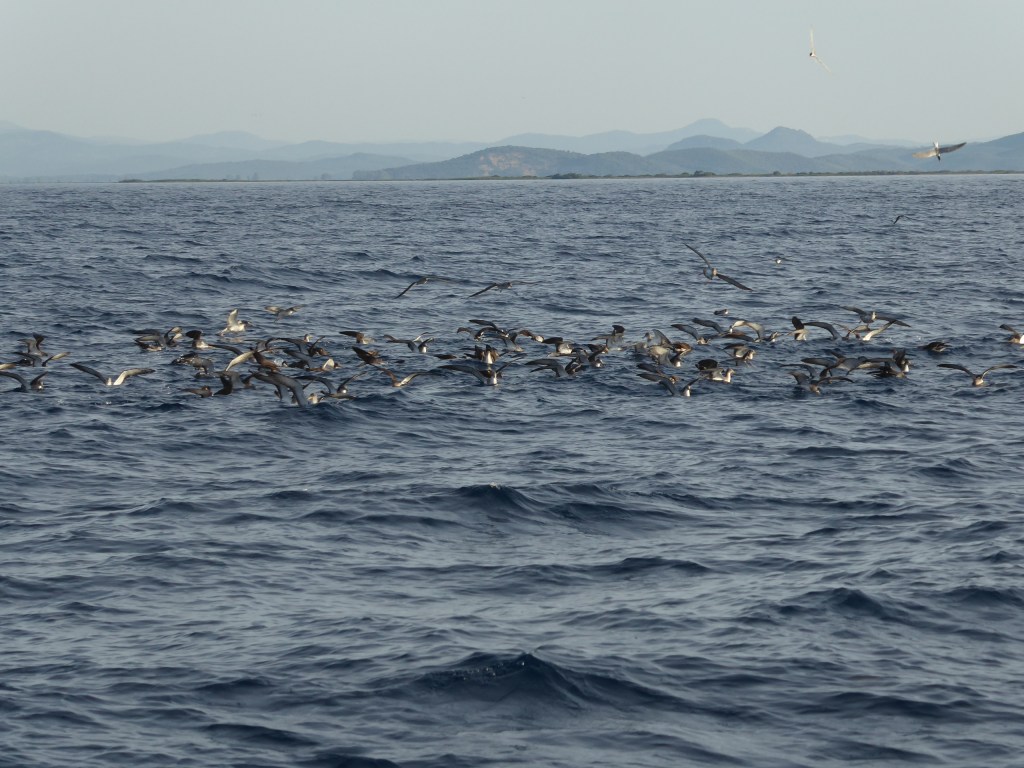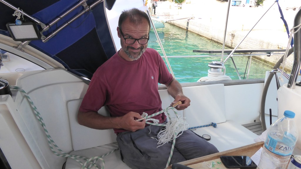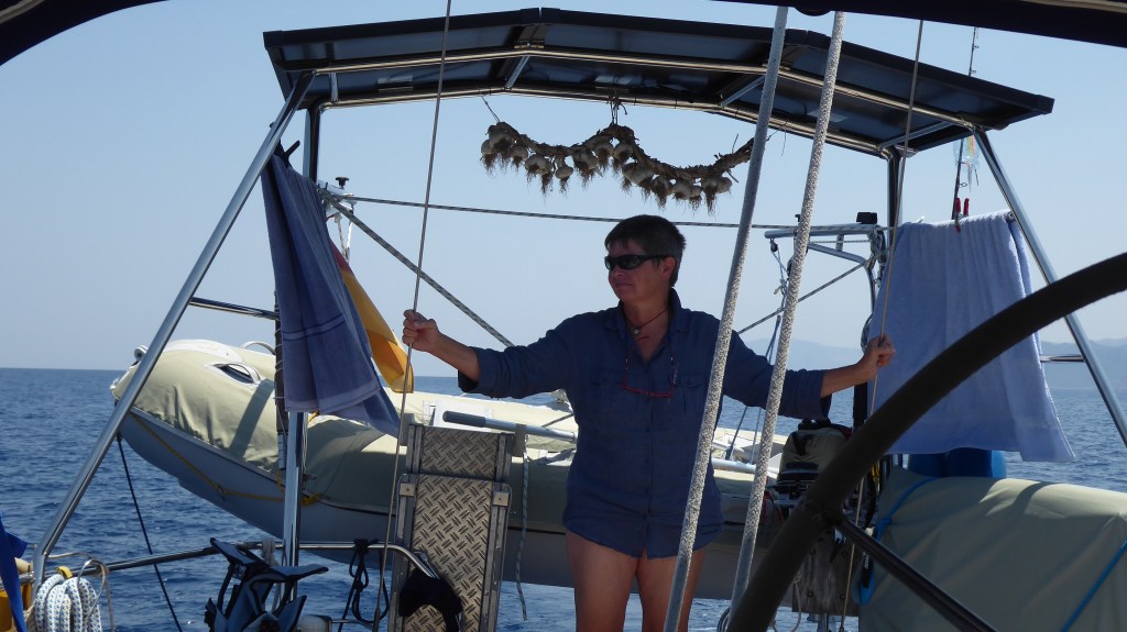Über die heiße Zeit gingen wir zurück zum Boot und ruhten uns aus. Ein großes Motorboot hatte neben uns geankert. Gegen Abend legte sich eine Flottille quer zu uns und alle legten ihre Kette über die des Motorbootes. Der Kapitän gab Bescheid das er bald ablegen will, aber der Flottille war dies egal.