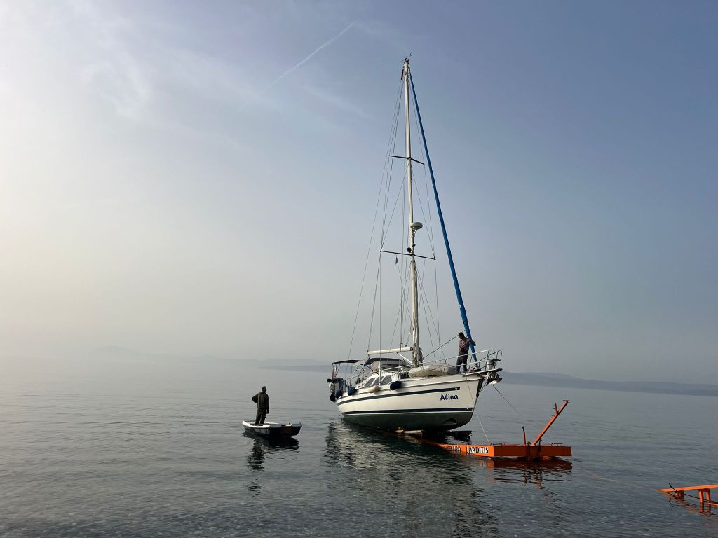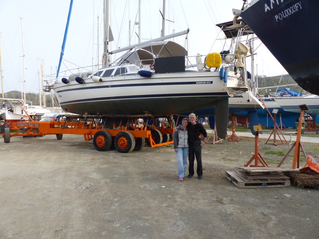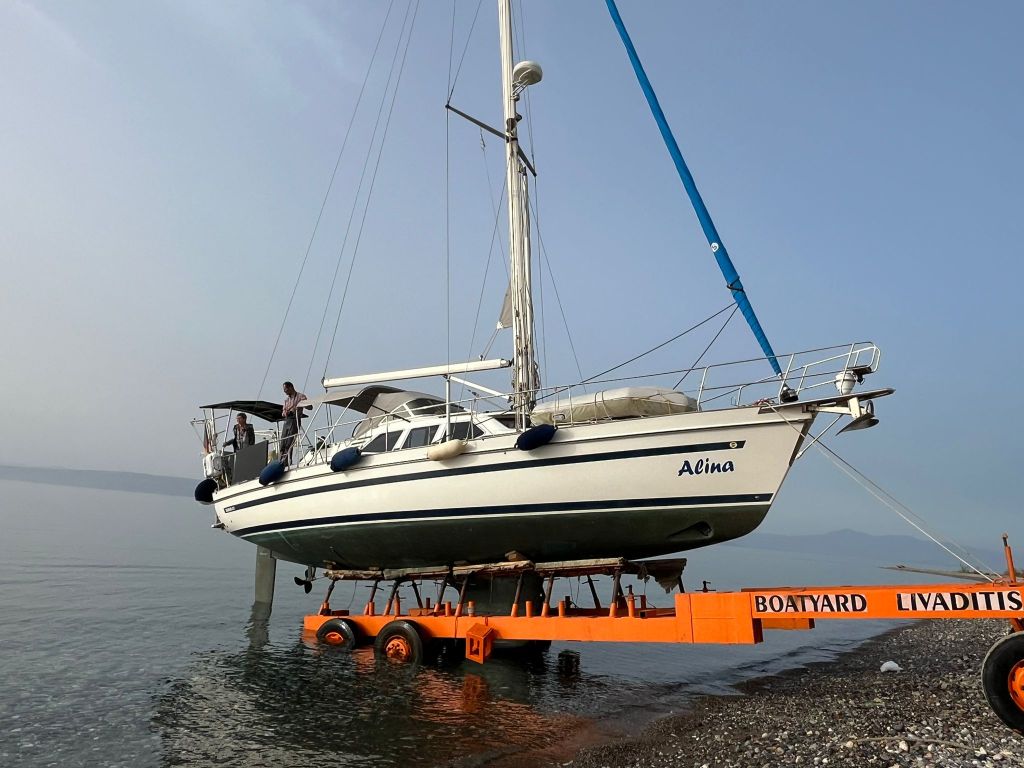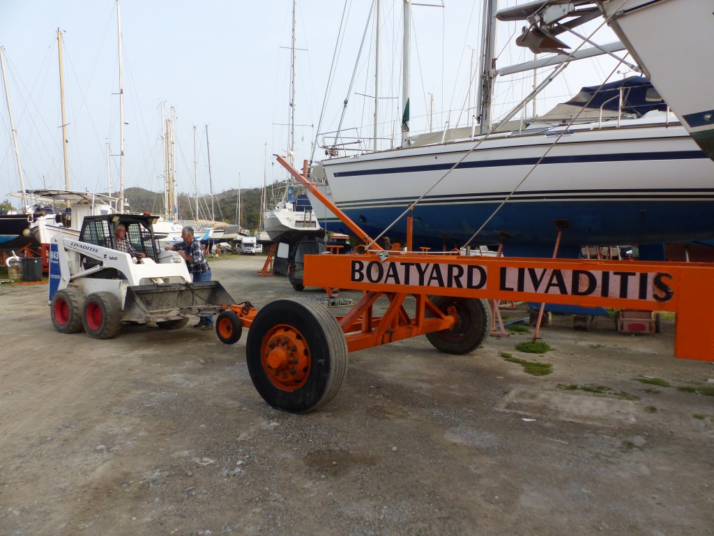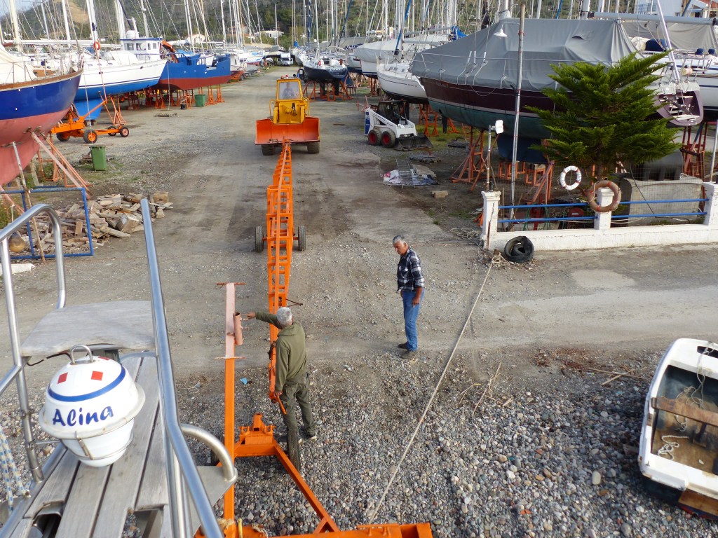 Am nächsten Morgen gehen wir früh an Land und helfen Segler Freunden ihren Mast zu stellen.