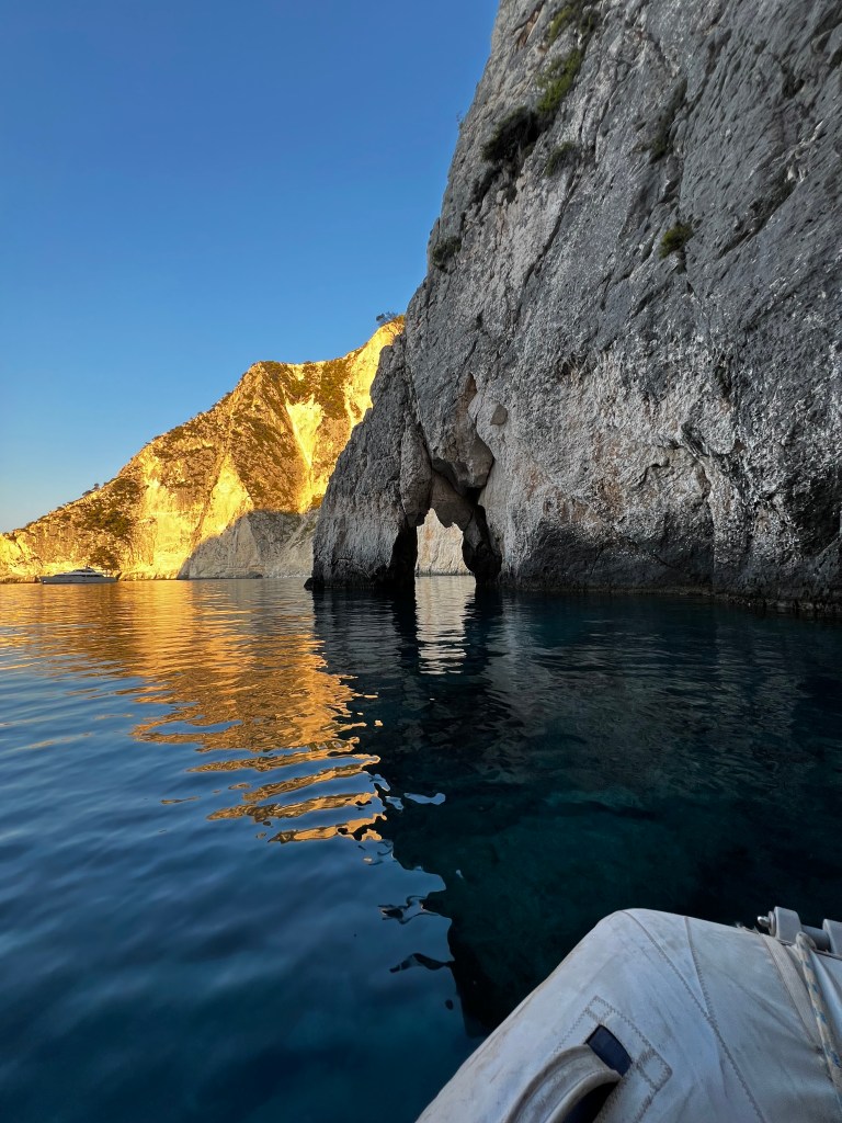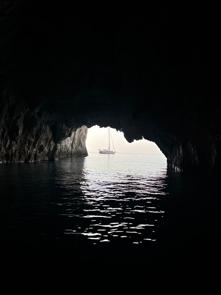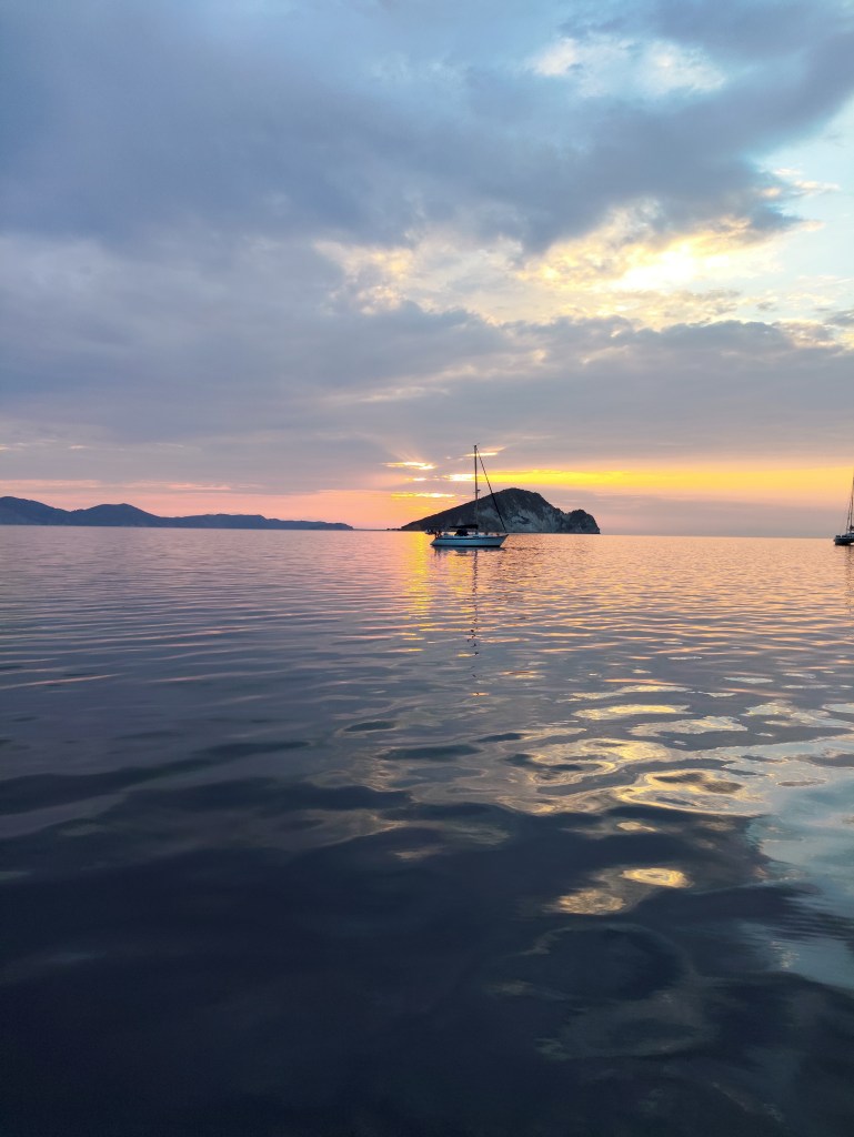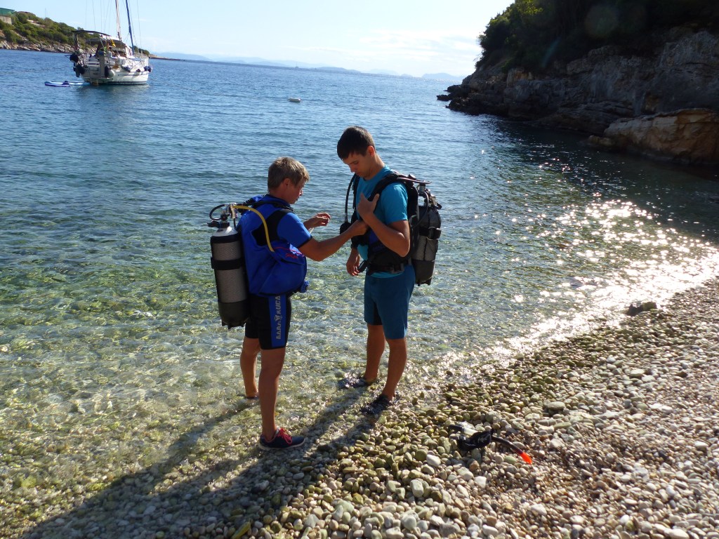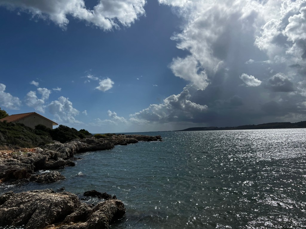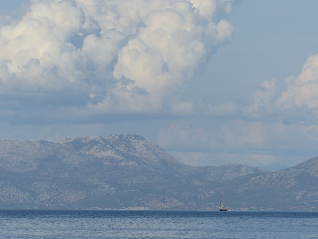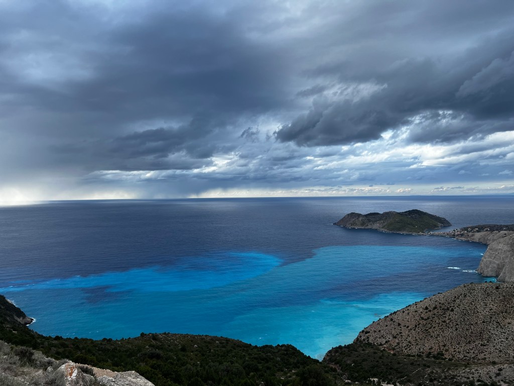 Am letzten Tauchspot drehe ich mit der Alina meine Runden während ein stärkeres Gewitter runter kommt und Lukas und Peter im Wasser sind. Kaum sind sie wieder an Bord nehmen wir Kurs auf Ithaka die Insel des Odysseus.