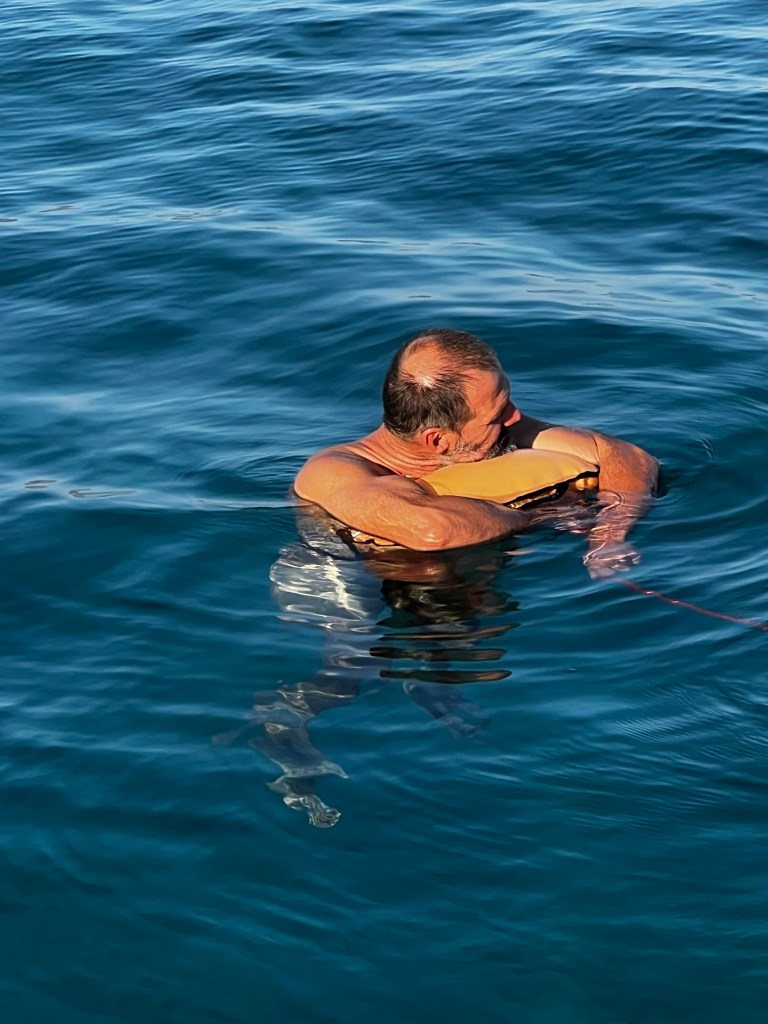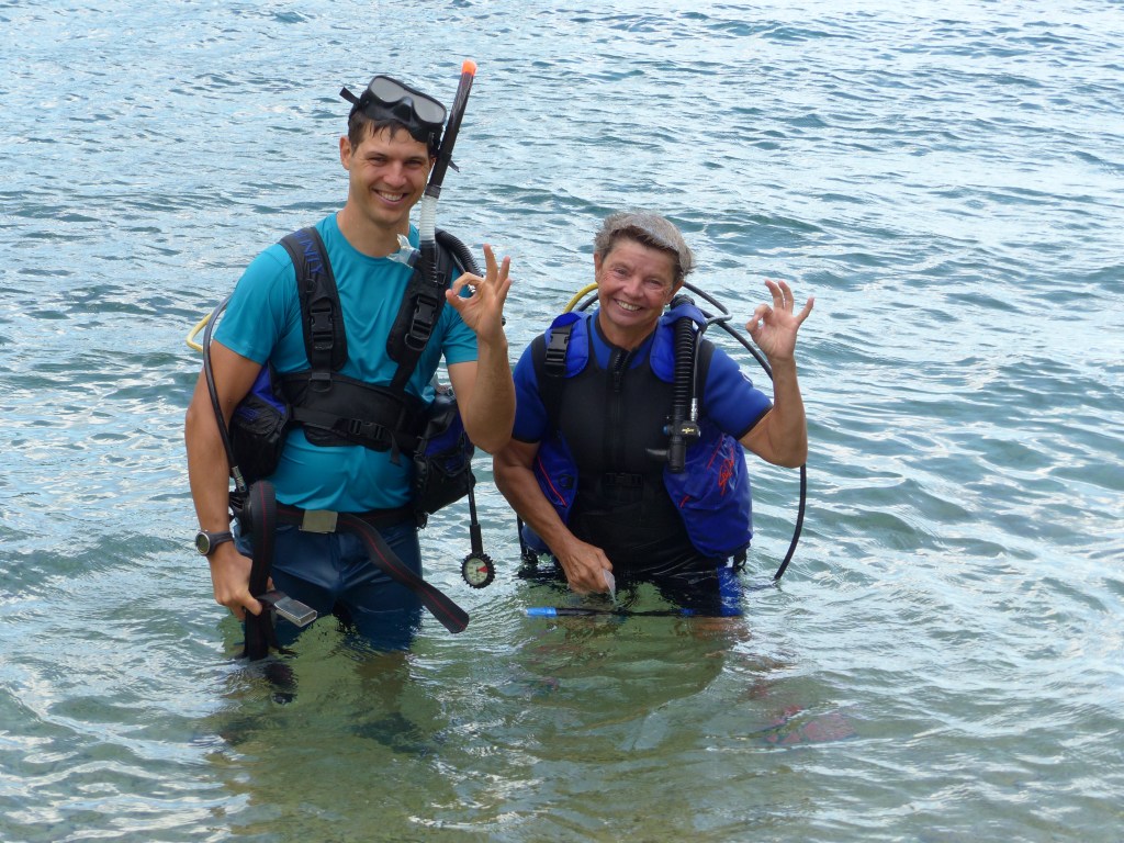 Die kleine Liara merken wir zu Anfang gar nicht da sie noch sehr intensiv an ihrer Mutter klebt. Außer das man sie mal hört. Lukas genießt es zu segeln und immer wieder mal zu tauchen. Er ist mir ein sehr guter Lehrer und führt mich ganz langsam und behutsam dazu mit ihm zu tauchen.