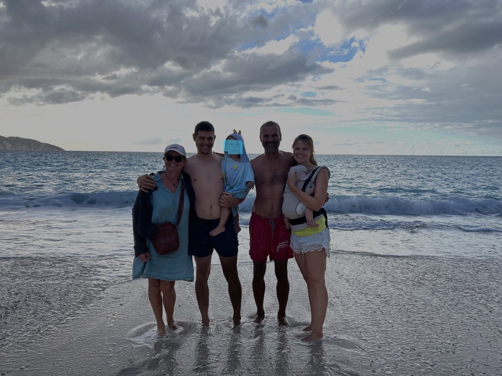 Wir genießen es wirklich als Familie unterwegs zu sein. Wir rücken immer enger zusammen und das ist sehr schön. Lio ist schon voll und ganz angekommen, liebt es nach anfänglicher Angst im Meer zu schwimmen und ist fast nicht mehr raus zu bekommen. Oma und Opa werden im Wechsel in Beschlag genommen die ihn natürlich auch etwas verwöhnen😉.