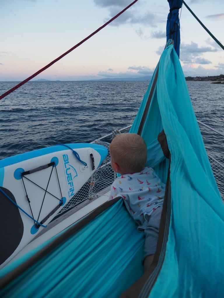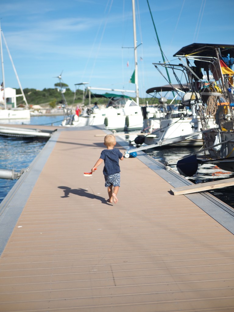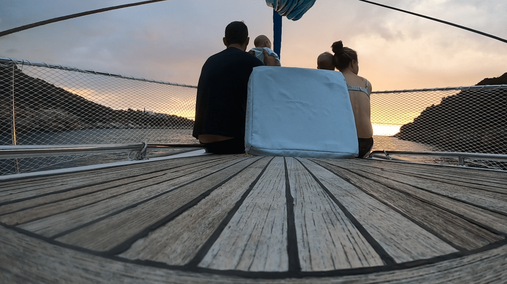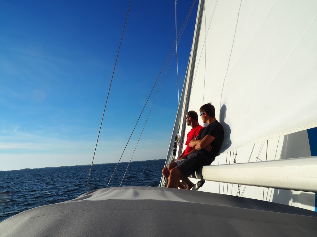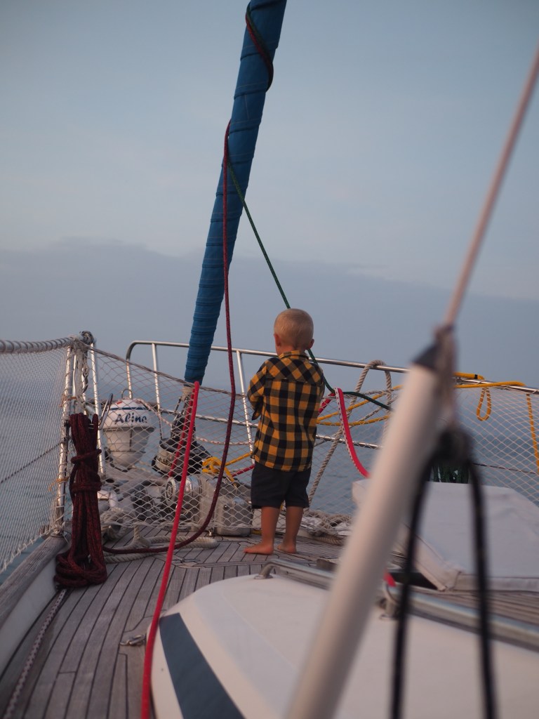 Um es vorneweg zu nehmen: die Zeit war toll und jede Minute wert. Wir hatten keine Bedenken mit dem Leben an Bord zu sechst, und das hat sich auch bestätigt. Es hat etwas gedauert, bis sich alle auf das Leben an Bord zu sechst eingestellt haben und jeder musste mit seinen eigenen Bedürfnissen etwas zurücktreten. Das klappt aber gut, wenn man gut kommuniziert und offen über alles reden kann. Für Lio war es eine tolle Zeit mit den Großeltern. Die drei konnten richtig gut zusammen wachsen und intensiv Zeit miteinander verbringen. Er hat, nach kurzer Eingewöhnung, keine Angst vor dem Wasser und der Tiefe gezeigt und jede Möglichkeit genutzt schwimmen zu gehen. Er hat sich gut an Bord bewegt und hat mal mehr oder weniger gut auf die gesetzten Sicherheitsregeln gehört. Ich freue mich sehr auf weitere Segelurlaube mit ihm.