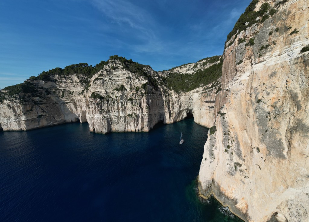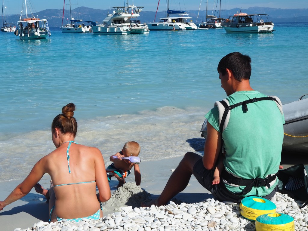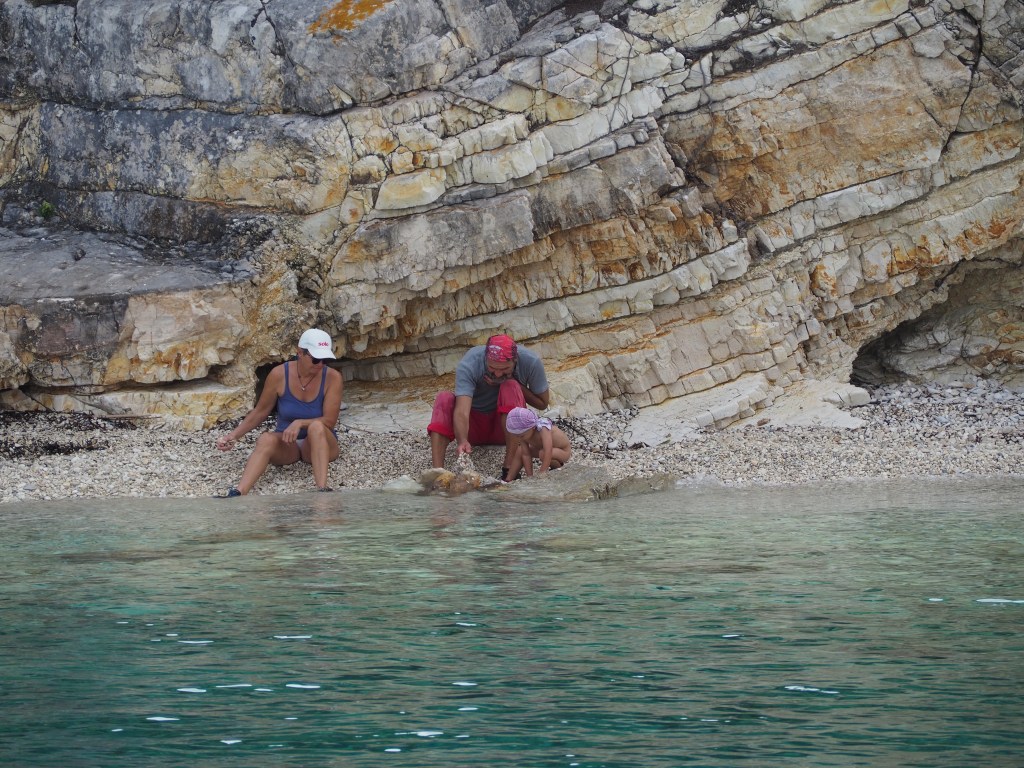 Die schönsten Orte, die wir bereist haben, waren die Buchten umringt von einer Steilwand, die Höhlen rings um den ionischen Inseln, der Ambrakische Golf mit seinen Delfinen, Paxos mit der tollen Bucht von Lakka. Die Wanderungen zum Paralia Navagio (Schiffswrack auf Zakynthos) oder in der roten Wüste, sowie über die verschlafenen Insel Antipaxos, auf der die Zeit stillgestanden ist. Aber am schönsten war die Zeit auf und um das Boot mit der Familie in einer Bucht.