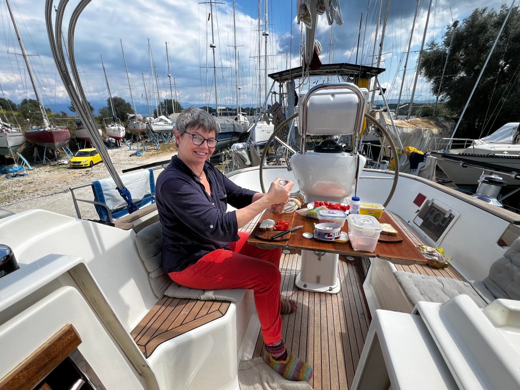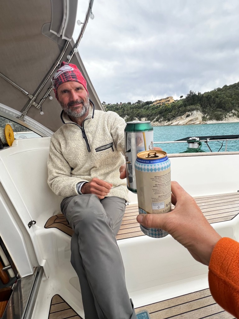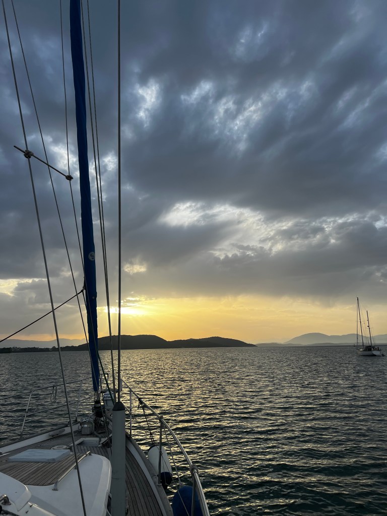 Diese Kabbel Welle macht die Überfahrt ziemlich ungemütlich aber nicht desto trotz rasen wir unserem Ziel, Gaios auf Paxos entgegen. Um die Mittagszeit entscheiden wir uns ganz hoch in den Norden von Paxos zu segeln da wir gut in der Zeit liegen. Kurz vor dem Ziel müssen wir noch einen schnellen Kreis segeln da eine Fähre nicht einsieht ihren Kurs leicht zu ändern. Auch wenn sie es müsste pochen wir lieber nicht auf unser Recht als Segler Vorfahrt zu haben.😉 So kommen wir halt eine halbe Stunde später in Lakka an. Es ist noch recht ruhig hier. Da es draußen ungemütlich ist gehen wir auch gar nicht an Land sondern genießen den Rest Tag an Bord.