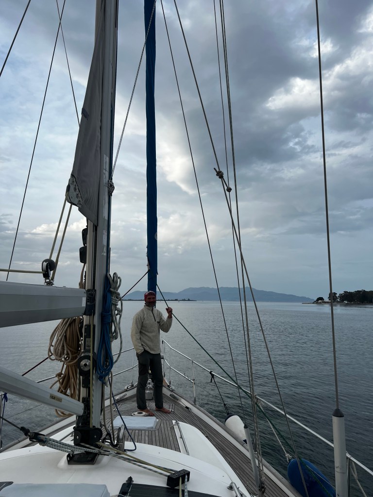 Wir starten ganz früh am Morgen Richtung Korfu. Es ist der letzte Tag mit Südwind dann soll sich der Wind drehen. Durch den Kanal von Preveza Motoren wir noch, aber kaum sind wir um die letzte Fahrwasserboje setzen wir die Segel mit dem Ziel bis in den nördlichen Teil von Paxos zu kommen.