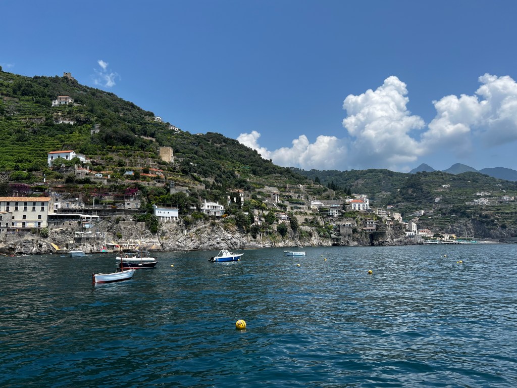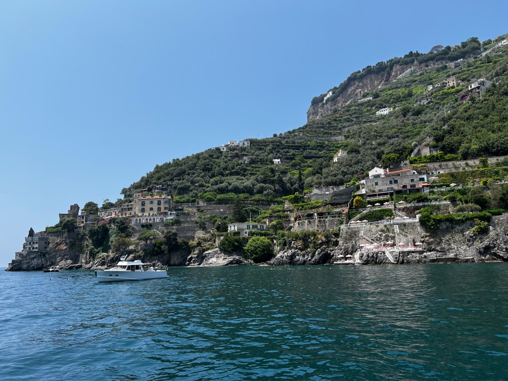 Aber leider zeigt sich schon unterwegs das der Besuch nicht Seefest ist. Da steckt man nicht drin und es kann leider jeden erwischen. Auf der Fahrt über den Golf von Salerno können wir einiges noch durch Ablenkung minimieren aber angekommen an der Amalfiküste leider nicht mehr.