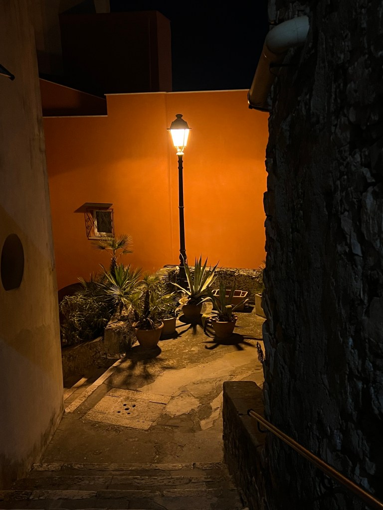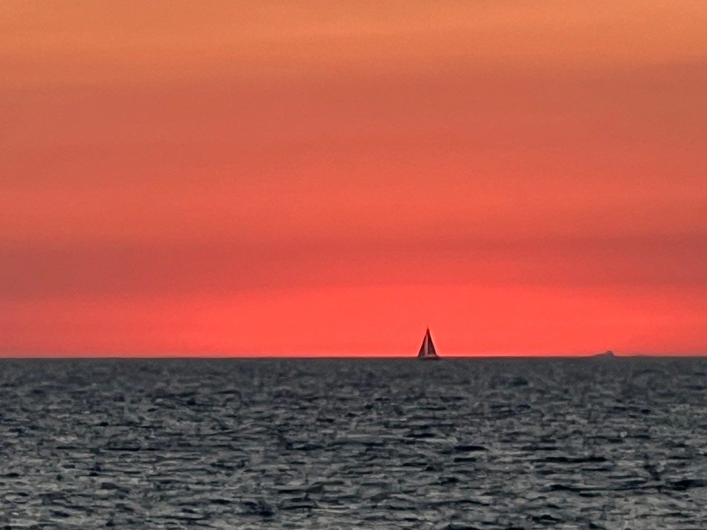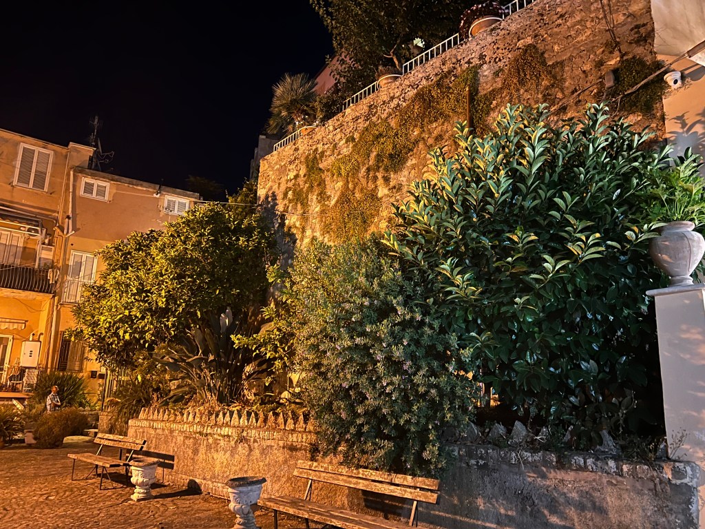 Über einen schönen Weg laufen wir zurück in die Stadt, genießen ein Eis und gehen an Bord kochen. Wir sehen mal wieder ein Löschflugzeug, denn im Umland von Gaeta brennt es. Aber er schafft es bis Sonnenuntergang, und das Feuer ist aus.