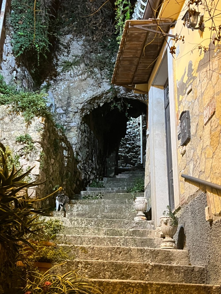 Dort oben liegt eine der schönsten Sehenswürdigkeiten, die Montagna Spaccata = gespaltener Berg. Der Legende nach soll sich der Fels bei der Kreuzigung Christi gespalten haben. Dort liegt nun die Wallfahrtskirche aus dem 15. Jahrhundert und ist ein bekanntes Pilgerziel. Zur Grotta del Turco geht es über Treppen zu einer wunderschönen Meeresgrotte. Aber leider haben wir Pech und es ist alles zu.