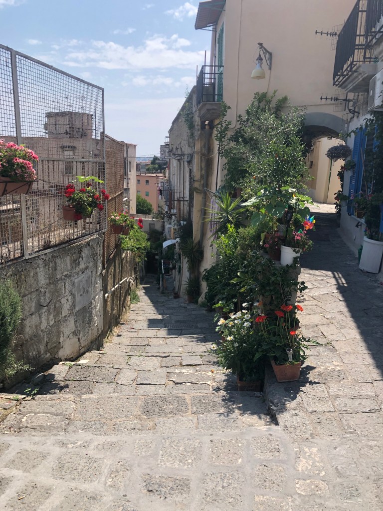Im mittelalterlichen Stadtkern lassen wir uns über viele Treppen und engen Gassen hoch zur Kirche San Francesco treiben. Von hier hat man einen wunderbaren Blick über den Golf von Gaeta.