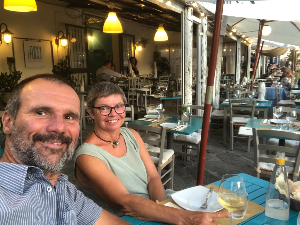 Gaeta liegt genau zwischen Rom und Neapel und wir können uns dort vor dem Hafen in die Bucht legen. Dieser Bereich bietet uns genügend Schutz. Wir nutzen die Zeit und gehen mal wieder größer einkaufen, können in der Marina die Waschmaschinen nutzen und mal die Bettwäsche und die Handtücher durch waschen. Alles wird mal wieder klar Schiff gemacht.