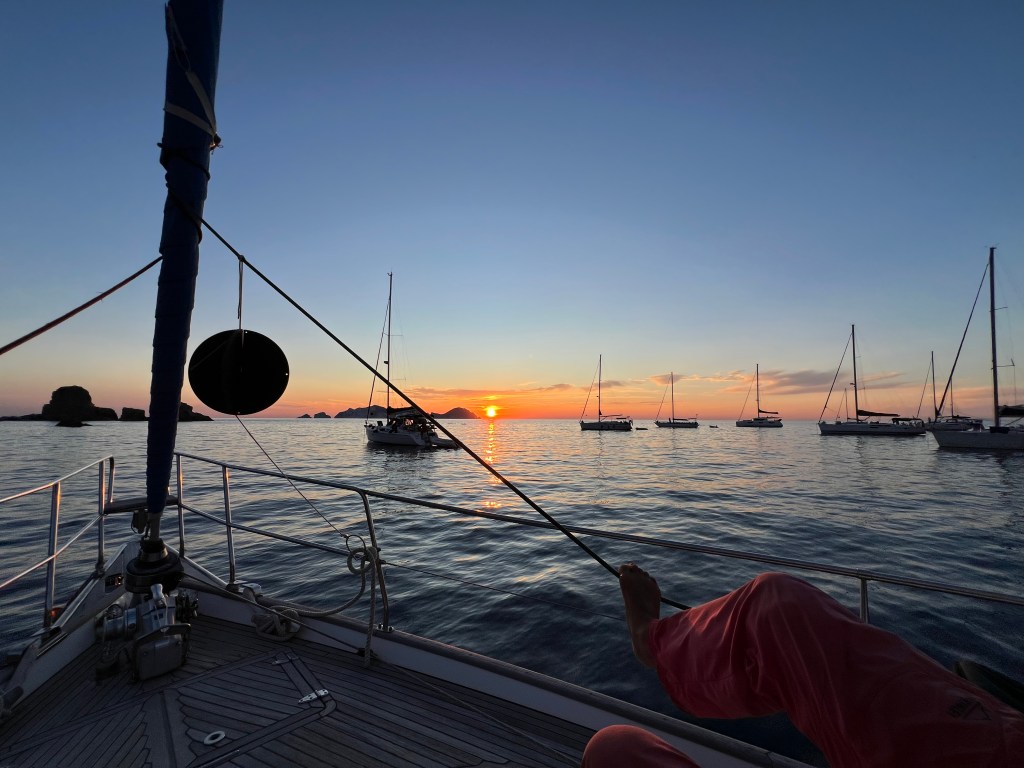 Die 3 kn maximal Geschwindigkeit werden nicht eingehalten denn die Italiener wollen zeigen was sie unter der Haube haben und das mitten durchs Ankerfeld damit es auch ja alle sehen.😏Wir genießen die Zeit trotzdem und saugen alles in uns auf. Es gibt traumhaft schöne Momente.