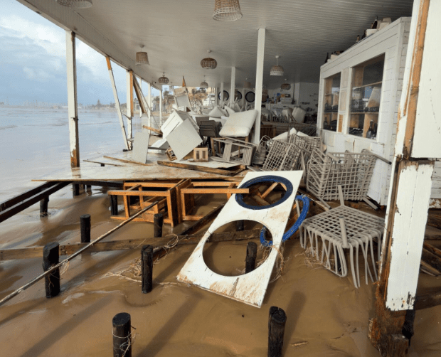 Im Ort selber sind die Lokale auf dem Strand zerstört worden. Sie waren zwar ungefähr 300 m vom Wasser entfernt aber dieses kam bis an die Promenade hoch und hat alles mit Sand gefüllt.