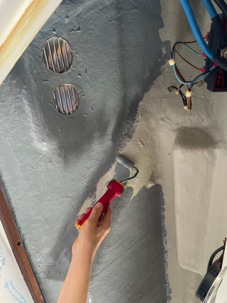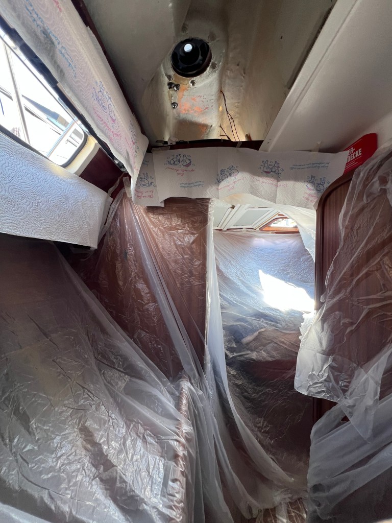 Nun sind wir soweit das es kaum noch da ist. Wenn eine Schublade aufgeht kommt etwas Geruch heraus. Aber man kann wieder auf der Alina leben. In der Dusche wo es noch am meisten riecht, habe ich Kaffee hingestellt. Kaffee frisst den Geruch. Hätte ich nie gedacht wie gut das klappt.