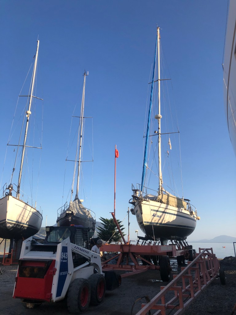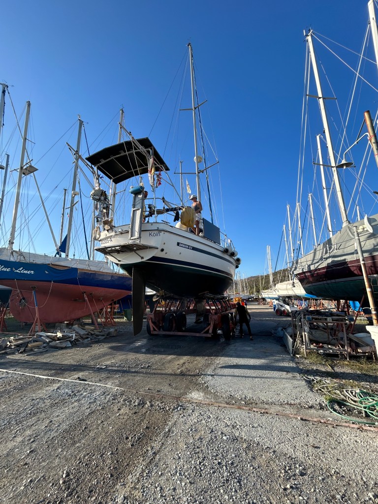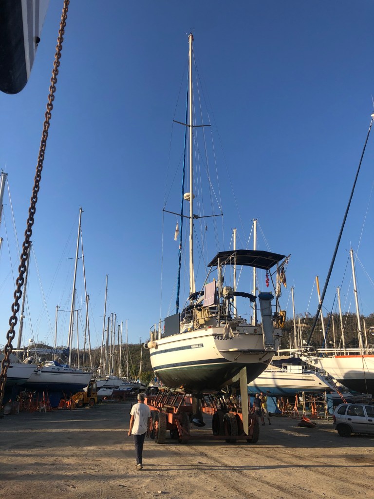 Der nächste Tag ist noch sehr heftig und wir bleiben im Hafen aber dann bekommen wir den Anruf mit der Nachricht, das wir an die Boje kommen sollen, denn wir werden rausgeholt. Ohhhh. Die Aufregung ist sehr groß. Wir machen alles fertig und ich fahre rüber zum Yard und auch direkt auf den Trailer.