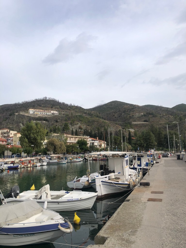 Da dort wieder zuviel Wind aus Süden kommt und wir nicht an die Boje vor dem Boad Yard können, gehen wir nach Limni in den ganz kleinen und engen Hafen. Dort liegen wir sicher und können Abends mit der SY Uenuku schön essen gehen.