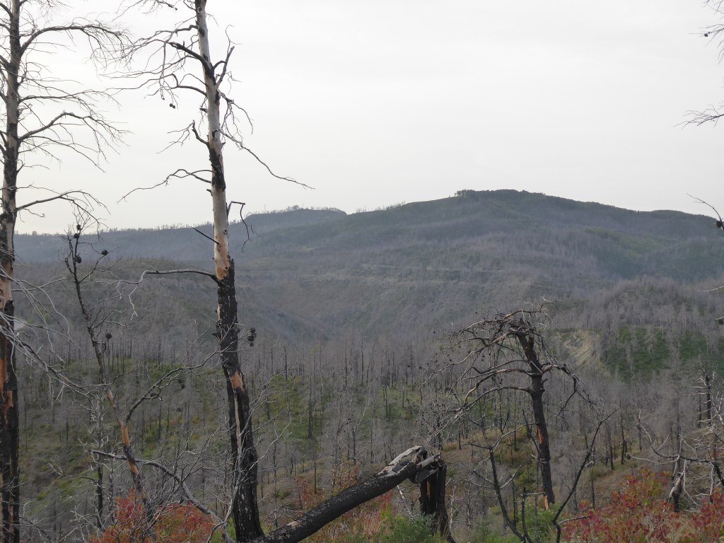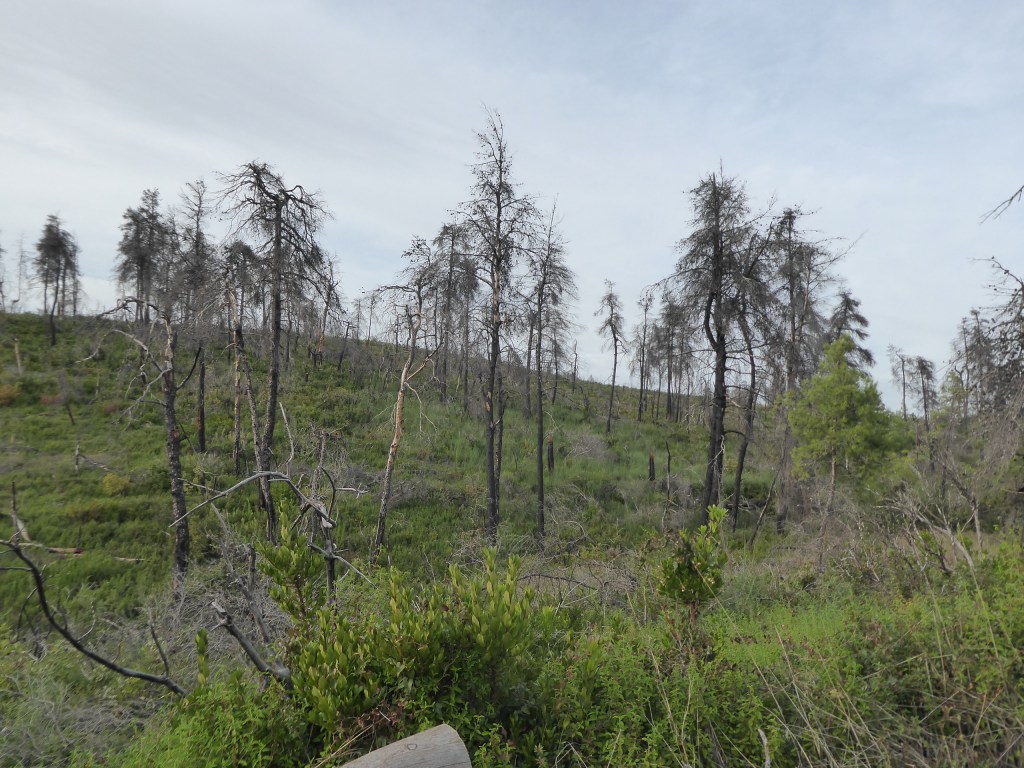 Als wir durch das riesige Gebiet fuhren waren wir unendlich traurig über diesen Anblick denn die Baumleichen stehen immer noch und zeugen von einem ehemaligen wunderbaren alten Baumbestand. Andererseits sah es so bizarr aus das es schon wieder mystisch schön wirkte.