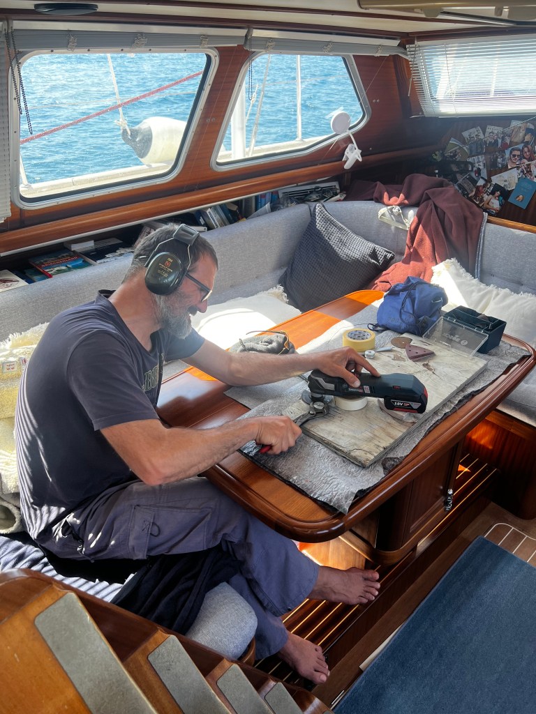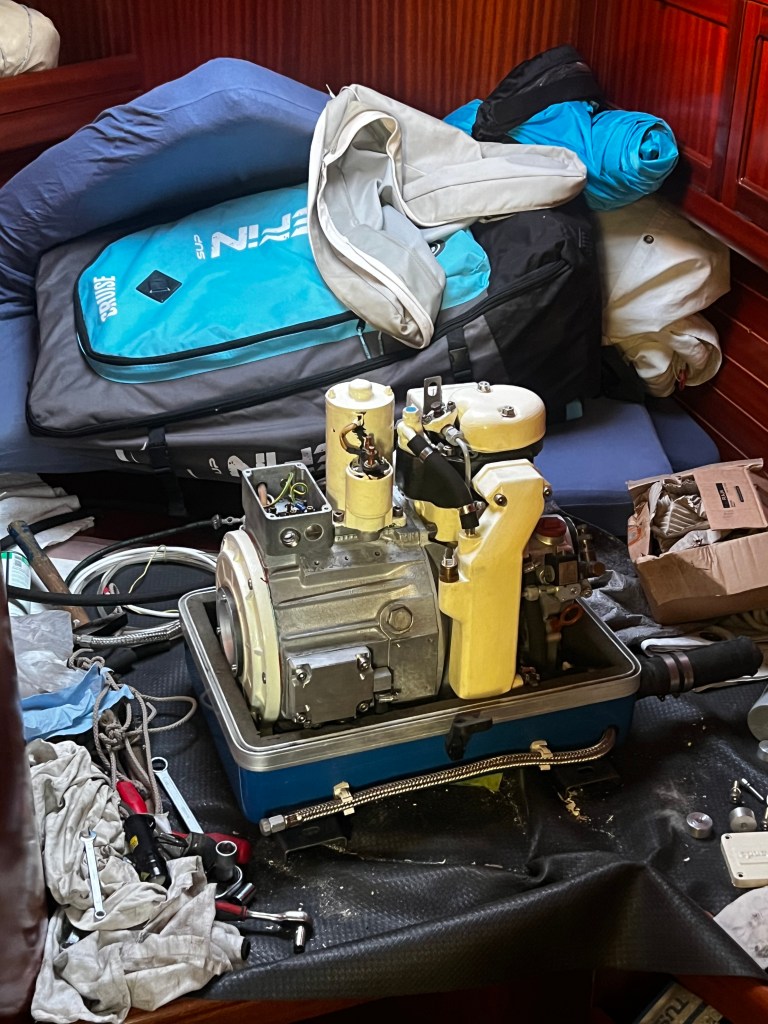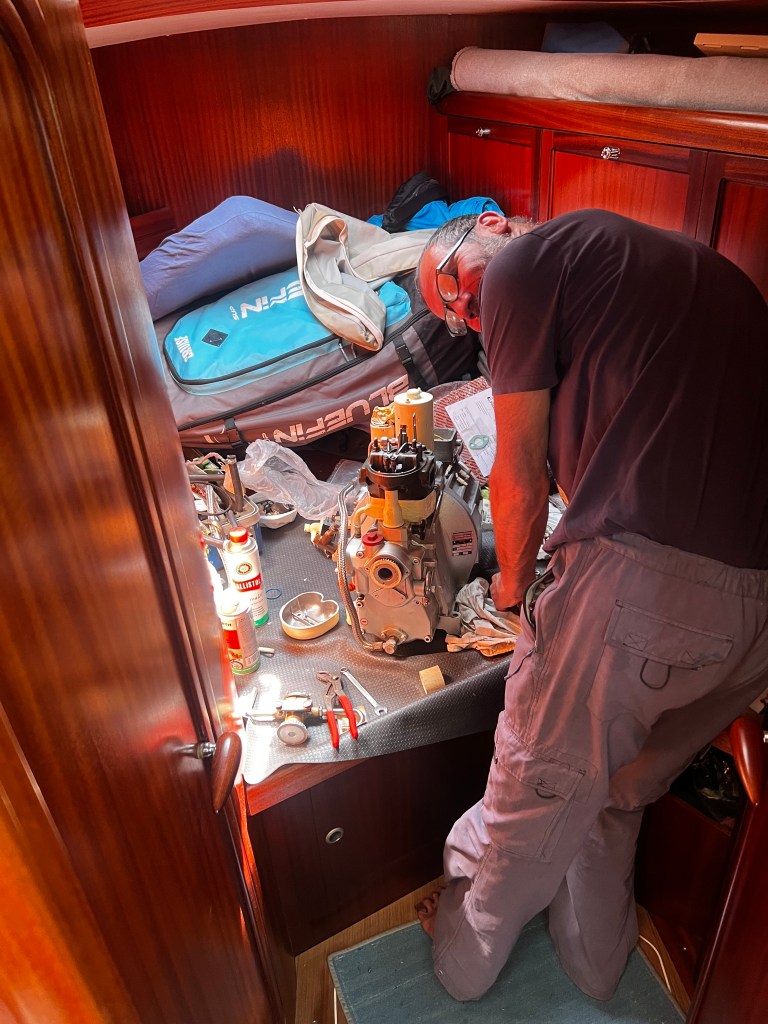 Gleich am nächsten Morgen segeln wir weiter Richtung Süden und Peter nutzt jede Gelegenheit in der Vorkabine die zur Werkstatt umgemodelt wurde, den Generator wieder zusammen zu bauen.