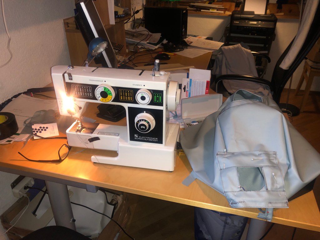 In Wirklichkeit legt man den Stoff gefühlte 100 Mal auf und kontrolliert ob alles passt. Nach einigen Stunden ist es dann geschafft. Nicht schön aber funktional 🙂